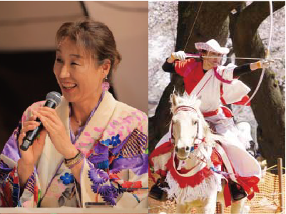 現在の「競技流鏑馬」人気に大きく貢献したスポーツ流鏑馬普及の第一人者として、現在も各地の流鏑馬大会に精力的に出場しながら、後進の育成にも努める南部流鏑馬師範より指導者のお墨付きをいただいた日本初の女性流鏑馬指導員でもある。